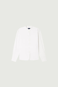 PYRENNES is a sleeveless gilet made of natural sheepskin. Its straight cut is designed like an asymmetrical wrap-around, with a buttoned opening and hidden pockets at the waist seam. The lambswool is particularly warm.