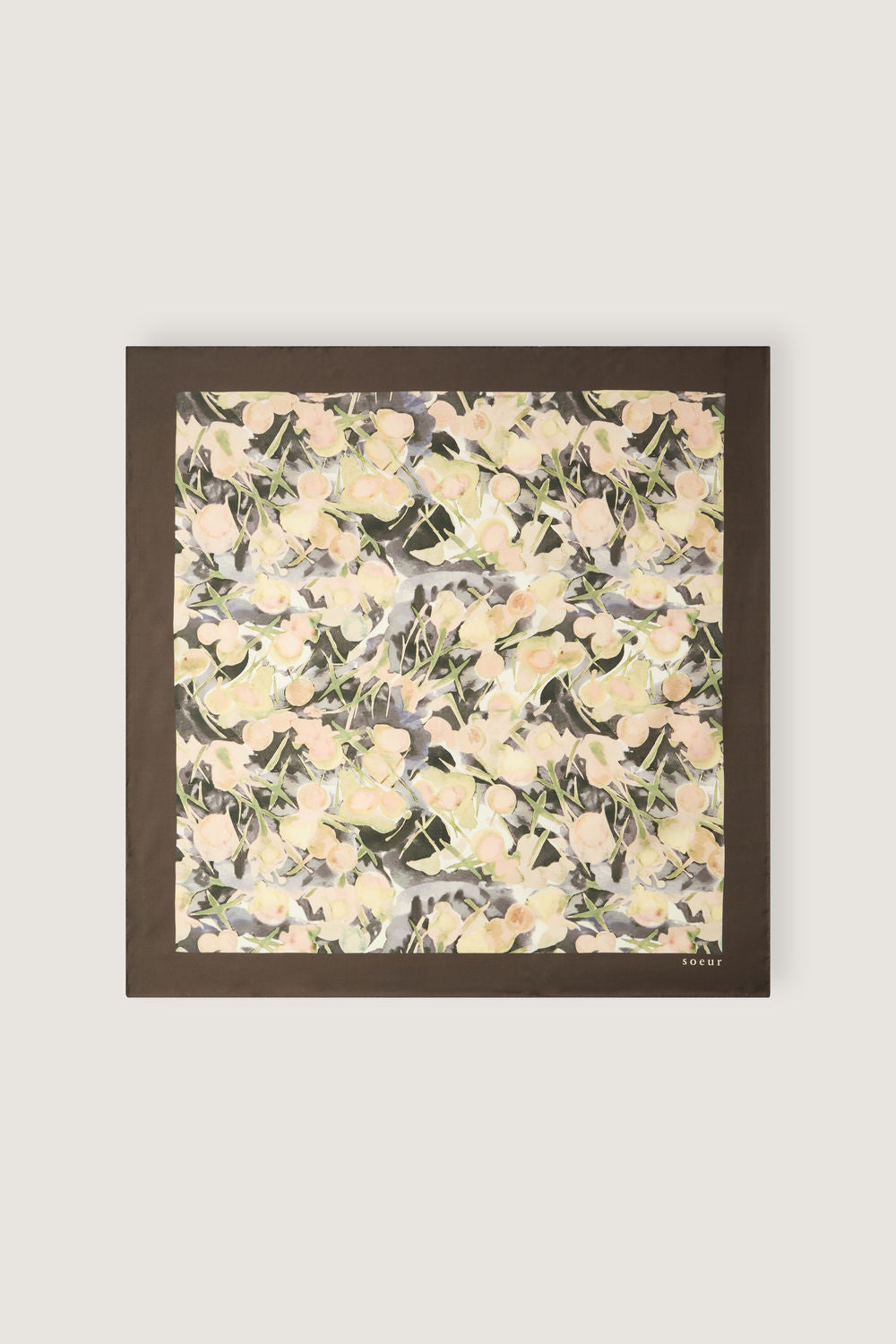 CAPUCINE is a printed silk scarf. A signature piece in the Soeur collection, our silk squares add a touch of elegance and whimsy to any outfit: tied around the neck, subtly peeking out from a shirt or sweater collar, knotted on a bag handle, or worn as a headscarf...