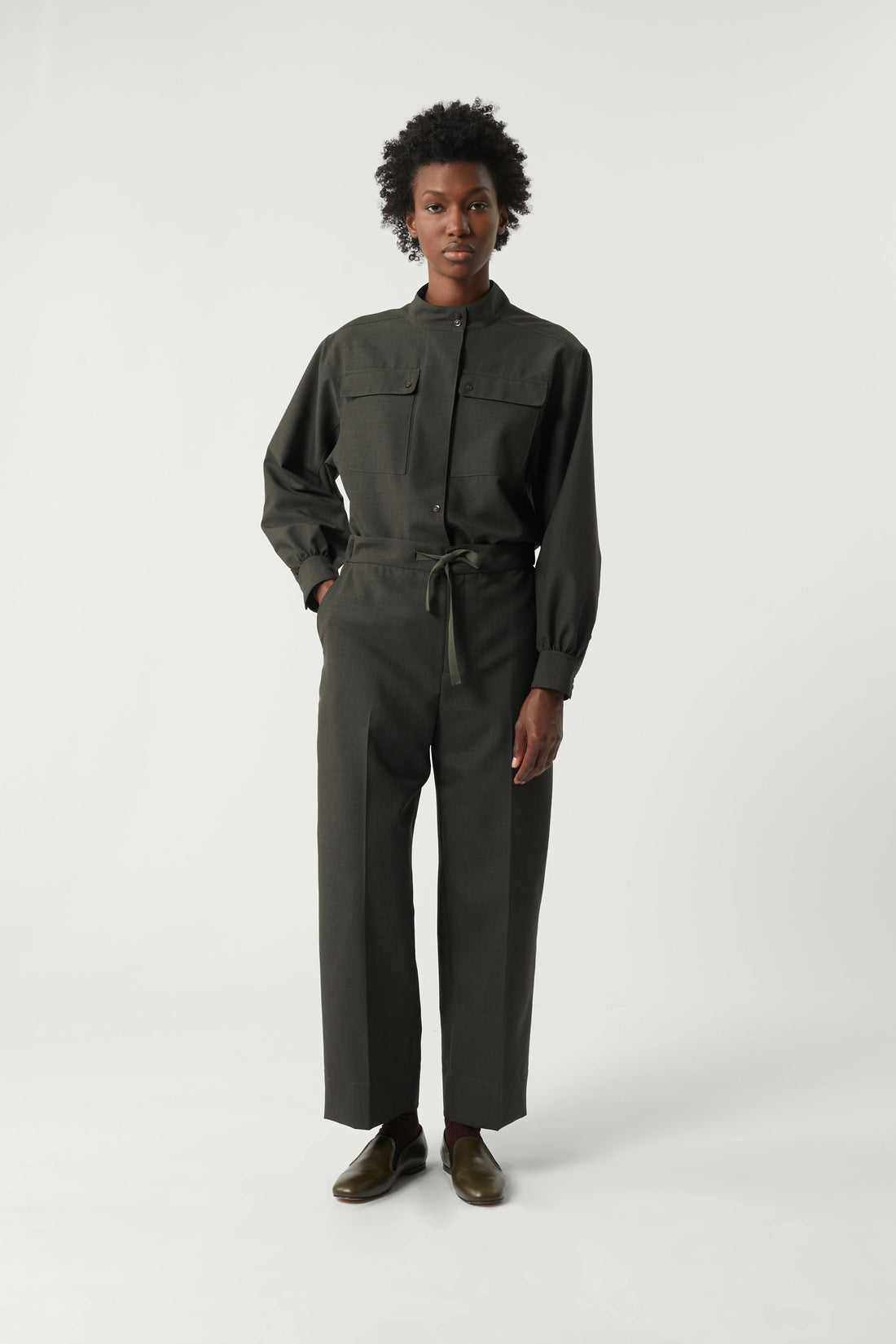 Khaki mottled wool trousers khaki